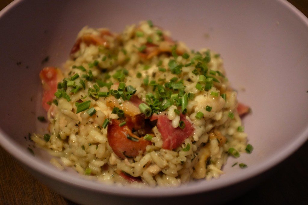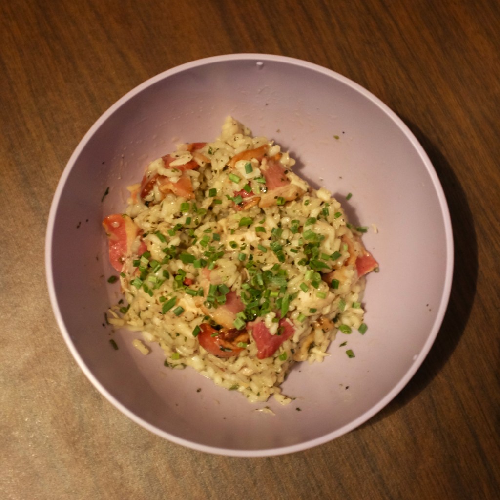 - Warm chicken stock (the amount you need exactly is hard to judge but try to have a litre/two pints around)