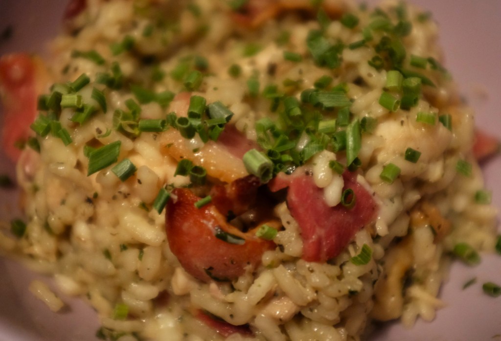 - 4 Slices of bacon, pre-cooked/from leftovers: Not too crispy! (chopped)