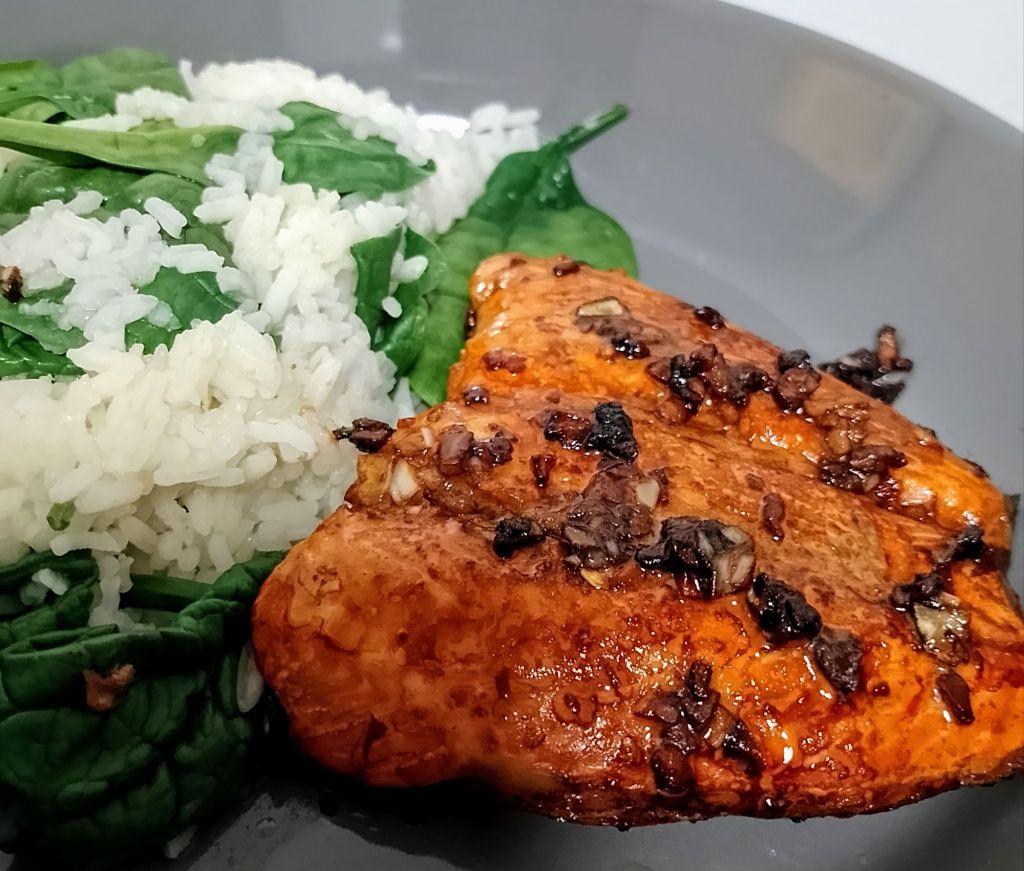 - When the skin is crisped up enough flip it over and add any remaining soy sauce around it in the pan (make sure to not put it on the crispy skin)