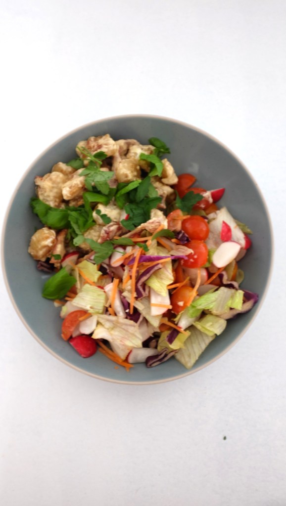 - Meanwhile mix the salad leaves, tomatoes and radishes