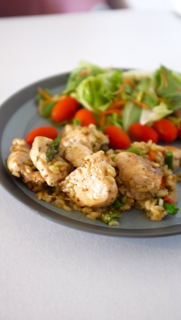 - Once the rice is cooked and the water absorbed add the chicken and everything in and serve!