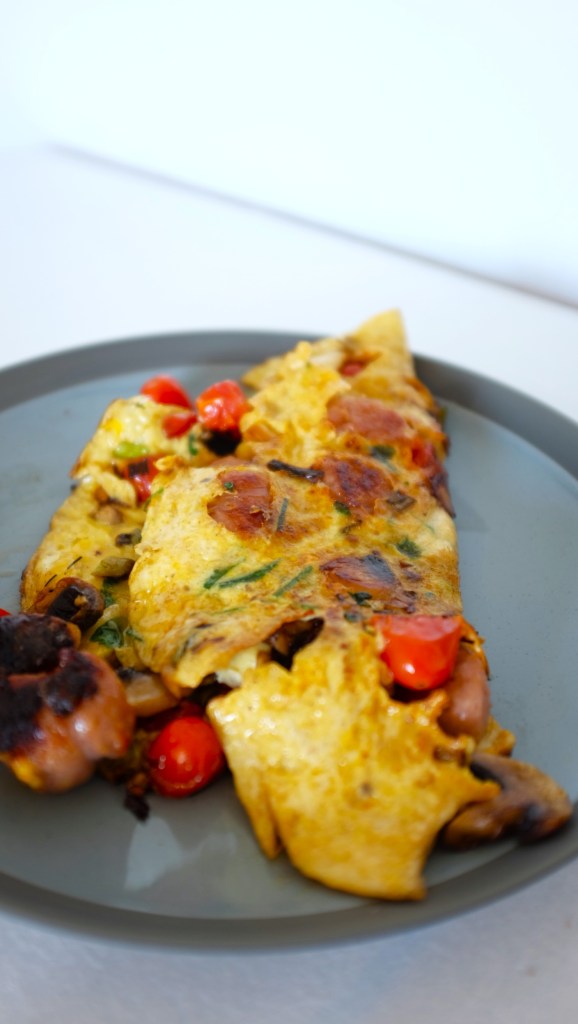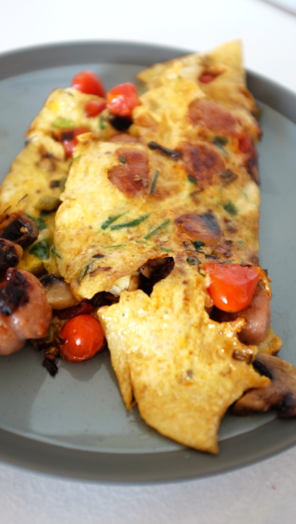I sometimes put cheese into my omelettes; Either in the egg mixture of when I am folding them over but did not do this here to try keep the fat content down a little bit.