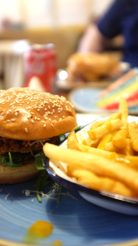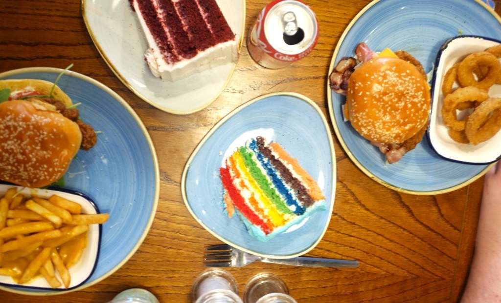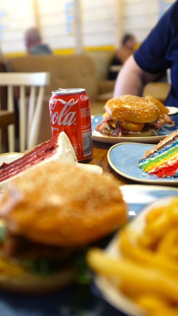 Another thing that brings me joy in Bob&Berts is the plates. Whilst they aren’t anything super fancy they brighten things up a little and make the table a more delightful spot to look at. The shape of them also helps for you to put things like a burger next to a cake plate without having to do too much of a juggling act.