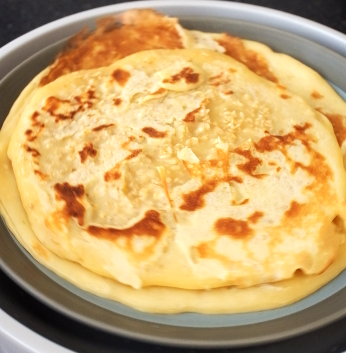 As these are actually pretty sturdy for a pancake you can leave these to cool and cover them for the fridge to reheat them in a pan later but if you do this add a little butter to the pan to stop them burning at a high heat.