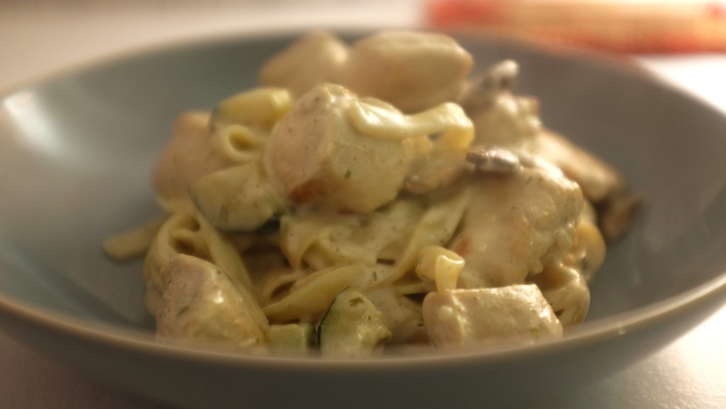 Whilst there is courgette and mushroom in mine you could easily add onion, finely diced carrots or even right at the end some fresh spinach. I was trying to use up a few things that I had hanging around and I think that the textures of them as they cooked allowed them to blend pretty seamlessly into this dish.