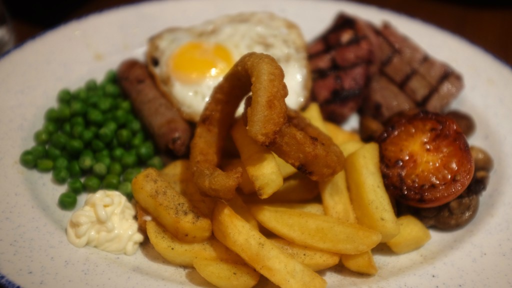 All the big plates come with chips, onion rings, peas, mushrooms and half a tomato and these were all pretty standard but I will say that the chips did have that good balance of fluffy on the inside but a little crispy on the outside. The onion rings probably could have done with a minute or two less cooking but they weren’t greasy and still delicious.