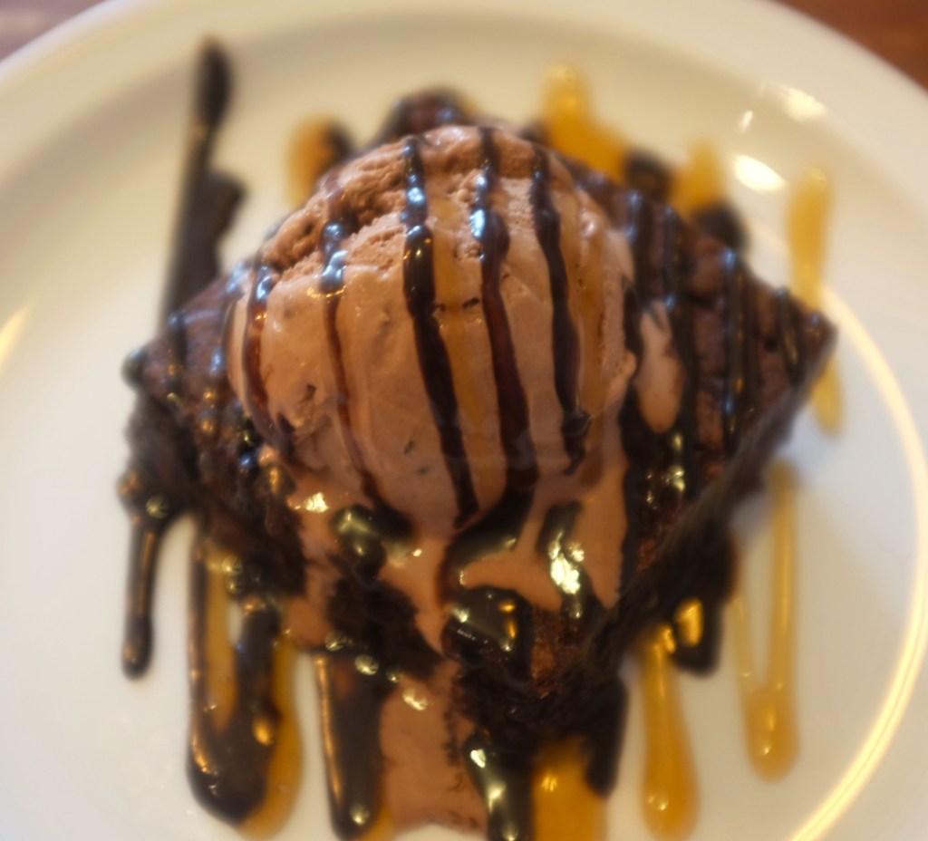 And we couldn’t resist; We went for dessert too! I went for the chocolate brownie, chocolate ice cream with caramel and chocolate sauce and my Mum went for the cheesecake of the day which was a New York style cheesecake with vanilla ice cream and strawberry sauce. Both of these were £7 each.