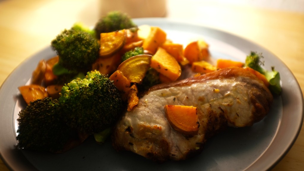 This will store fairly well. If you go to microwave it consider that any crisp sweet potato you got might become soft again with the steam. If you have extra time I’d suggest just throwing it back into the airfryer to reheat. If you intend to do more pork and reheat that as well be sure to do the pork to just and just cooked as cooking it again will cause it to dry out a little so what would be perfectly cooked will become overcooked!