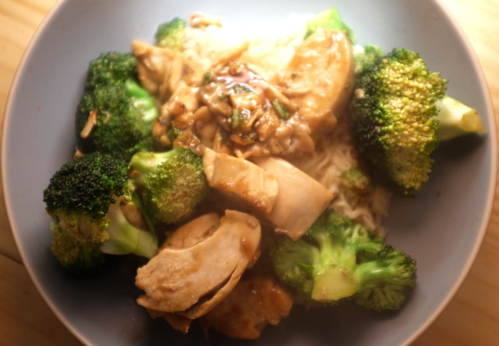 - When the chicken is well heated, but the broccoli still crunchy, serve on top of the noodles