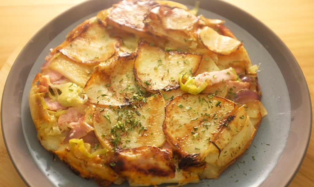 When I shared this recipe on TikTok somebody suggested that instead of bacon you could use corned beef and I can absolutely imagine that working too. It would add a few extra calories but you could just pop it straight into the bowl, a little mushed up, with the onion and only have to cook those leeks up. If you have leftover ham/gammon if you chop it up fairly small that could also go in here instead of bacon medallions. Or of course just regular bacon works too.