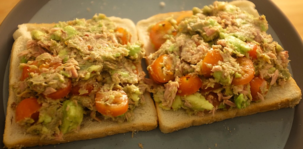 I add some pretty basic seasonings here but you could go to town and instead of garlic granules make some garlic butter for the toast or rub a fresh clove across the toast in a similar way to you might with bruschetta.