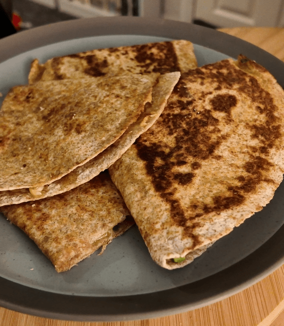 The first time I ever made quesadillas I did this combo and have more combos on the way but this time it was just using up leftover Christmas cheese. So if you also have leftover, if there is such a thing, cheese from something like a dinner party or just because you’re a lover of cheese then this is a perfect way to use one or two up.