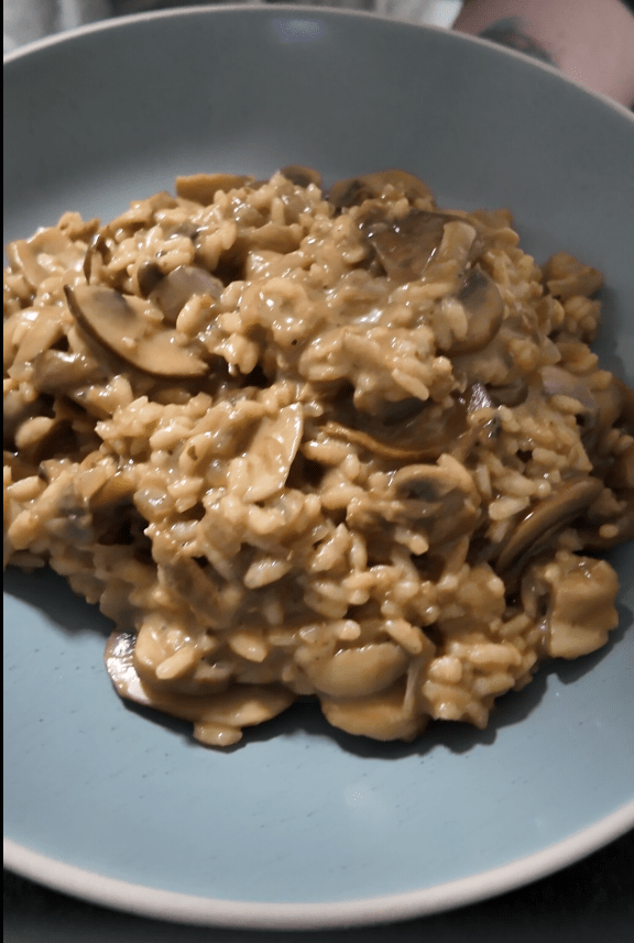 I got my dried porcini mushrooms from Lidl and they come as 60g, which is two servings, for £1.89. This makes them a bit on the pricy side but even when you add the regular mushrooms to it you’re still looking at a similar price point to two portions of meat. The arborio rice is also from Lidl.
