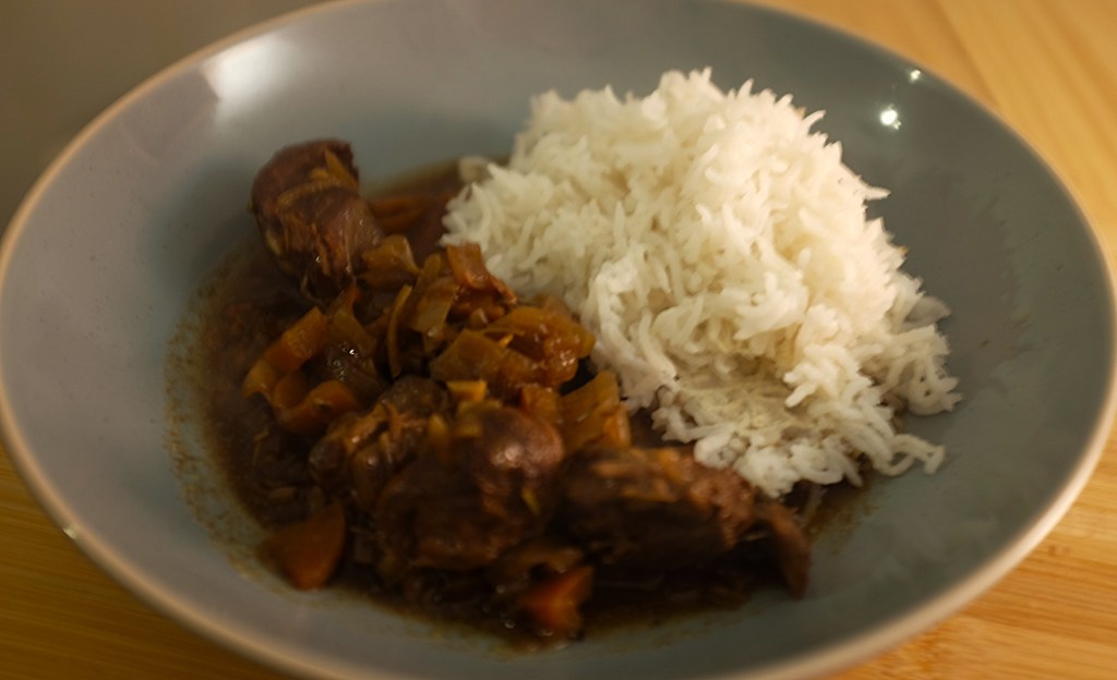 If you’re a fan of potatoes in your stew then add them in before you turn the slow cooker on/put it into the oven. There’s something about them that I really struggle with because of the taste/smell association to something in my childhood. If you do this you can easily keep it to being one pot without the need to add anything like rice or mash on the side and you can bulk it out a lot as well.
