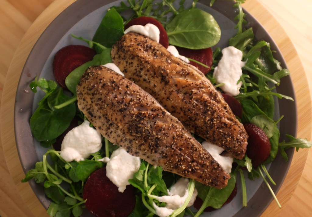 This is a great throw together lunch or dinner and you can obviously increase the volume of the recipe super quickly for either leftovers, serving more people or to take with you for a couple of days for lunch. If you have a mini dressings pot then you might want to put the horseradish mix in there if you’re taking it for lunch just to help keep the salad less soggy whilst sitting.