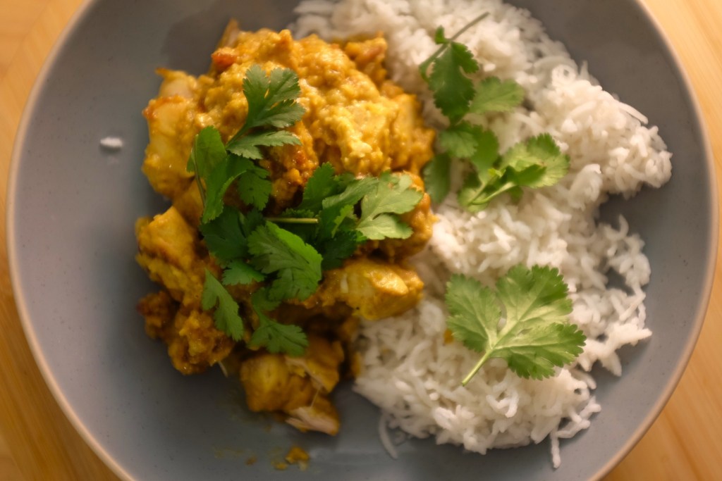 If you don’t have light coconut milk available or 0% fat yoghurt that’s no problem at all but it will make it a bit higher on the calories and might also increase the chance of this splitting or separating as it simmers away. If you’re really not really concerned about the calories at all you could get chicken thighs with the skin on and remove it before doing this recipe and then crisp it up to crumble on top along with the coriander at the end.
