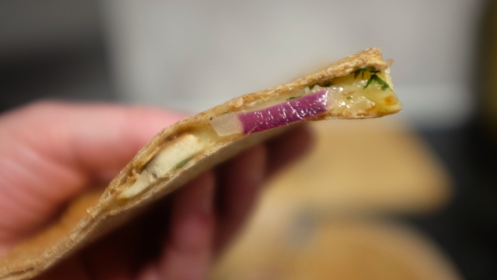 If you happen to have some caramelised onion jam or some reduced onions leftover from some other cooking then you can absolutely use that instead. If you’re going for a jam or chutney from a jar just be sure to loosen it up for a moment in the microwave before coating those cooked mushrooms through with it or before spreading it directly onto one side of a tortilla.