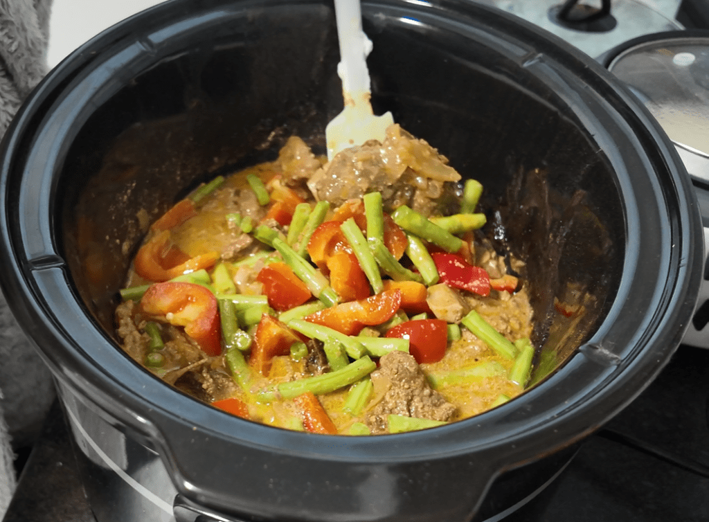 Other options for the slow cooker itself would include carrots, peas or something like kidney beans.